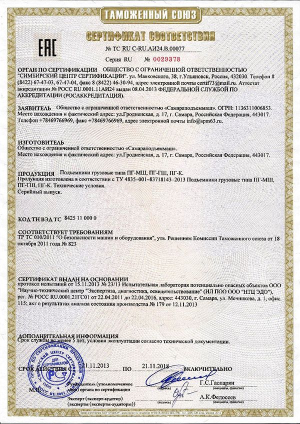 Для изготовления такого оборудования необходим сертификат ТР ТС (Технический регламент Таможенного союза ТР ТС 010/2011 «О безопасности машин и оборудования» от 15 февраля 2013 г.).